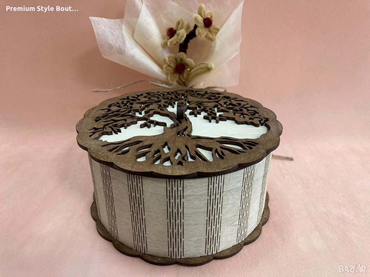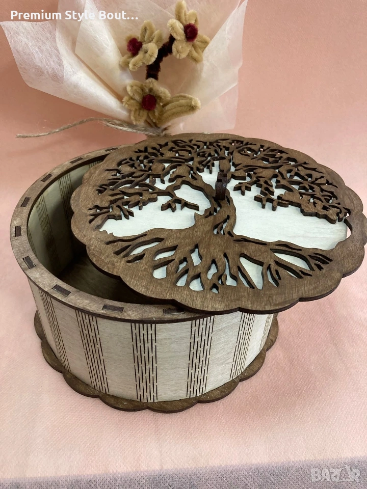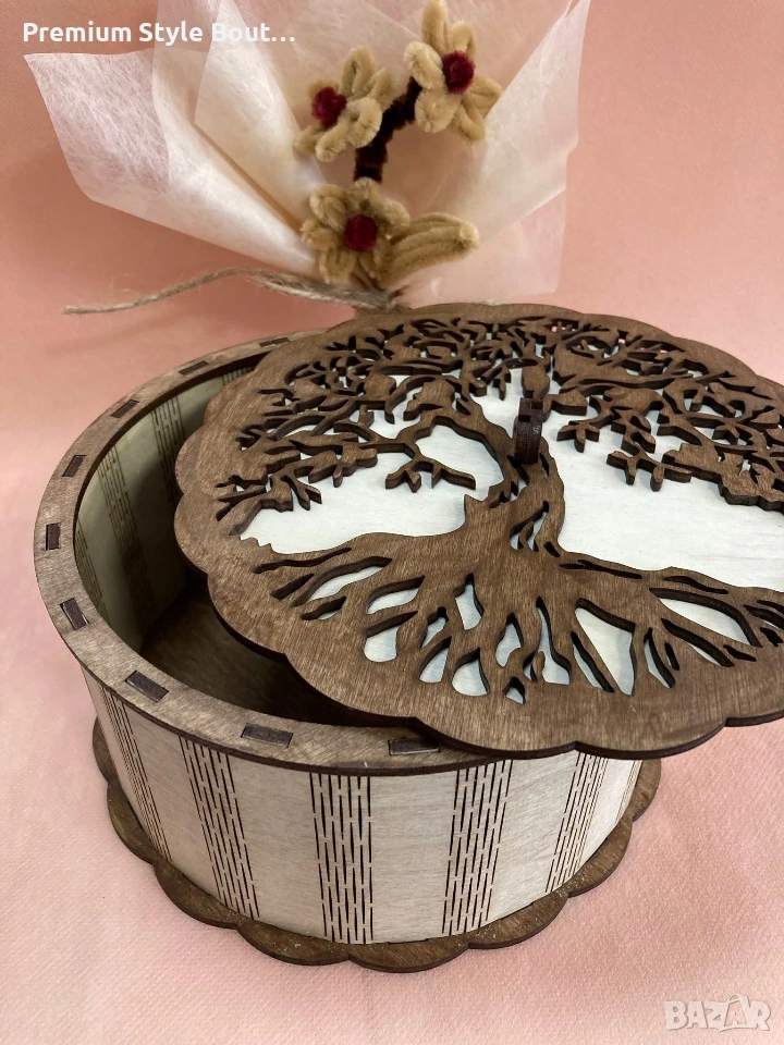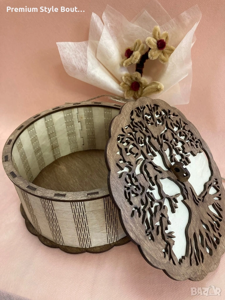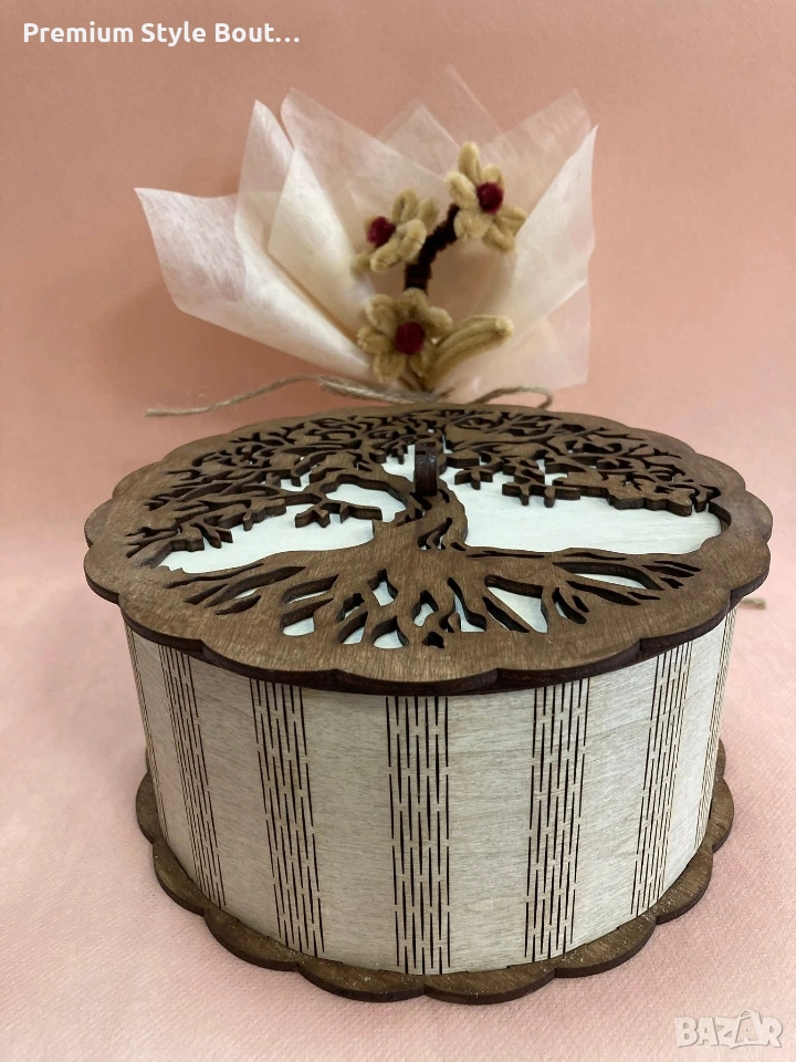 Тази нежна дървена кутия носи в себе си топлината на ръчната изработка и красотата на природата. Изрязана с внимание към всеки детайл, тя пази малките съкровища, спомени и чувства, които правят живота ни специален. Понякога най-красивите подаръци не са просто предмети…а символи