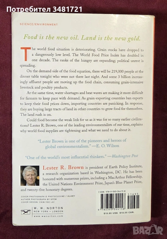 Лестър Браун пише тази книга, за да насочи внимание към световната продоволствена ситуация, която се влошава. Запасите от зърно са паднали до опасно ниско ниво. Световният индекс на цените на храните се е удвоил само за десетилетие. Гладуващите се увеличават, докато политическите вълнения се разпространяват.