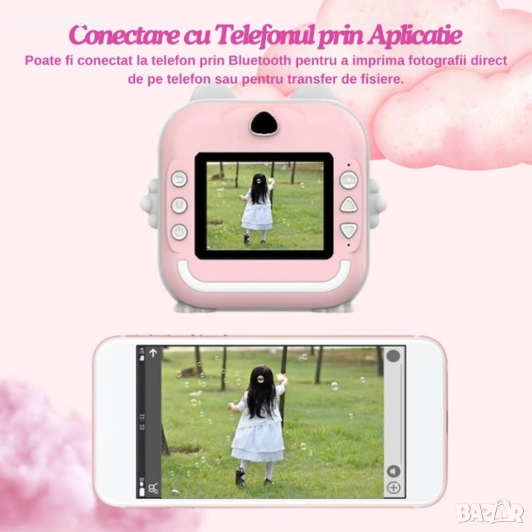 Нашият Детски фотоапарат с незабавен печат е проектиран да бъде едновременно забавен и висококачествен! С модерен IPS екран с размер 2.4 инча и двойна камера, той предлага изключителна яснота при правене на снимки (24 MP) и видео (1080P). Комплектът включва 3 ролки термохартия, осигурявайки възможност за до 1500 снимки с едно зареждане на 800 mAh батерия. Очарователният дизайн "Коте" със светещи уши го прави хит сред деца над 3 години!