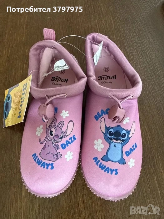 Нови момичешки аква/ плажни обувки. Номер 32. С любимия Дисни герой-Stitch. Подходящи за подарък, нови с етикет.