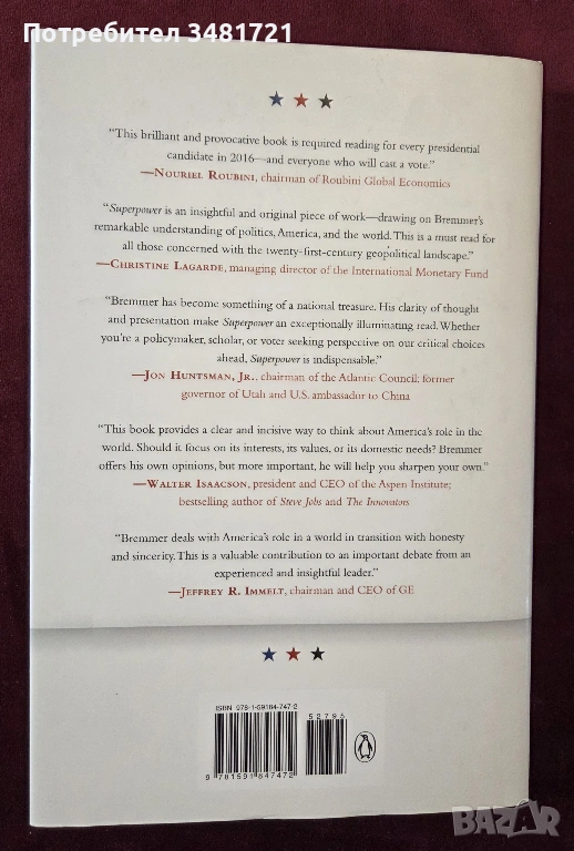 Иън Бремер твърди, че безцелната външна политика на Вашингтон е станала непосилно скъпа и все по-опасна. След края на Студената война, американските политици се препъват от криза на криза в Афганистан, Ирак, Иран, Либия, Сирия и Украйна без ясна стратегия. Обикновените американци твърде често основават своите външнополитически избори на лоялност или противопоставяне на управляващата партия. Вече не можем да си позволим това самодоволство, особено сега, когато и двете партии са дълбоко разделени относно ролята на Америка в света, смята автора. Следващите президентски избори лесно биха могли да противопоставят интервенционистки демократ срещу изолационистки републиканец – или точно обратното, пише Бремер през 2015та година.