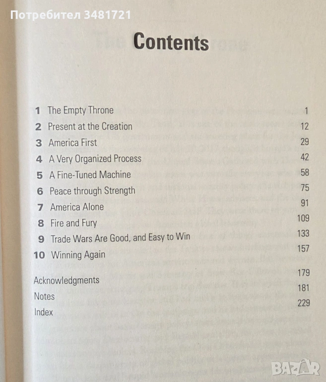 Сега Америка се е отказала от тази жизненоважна лидерска роля, смятат те. Тази книга е вътрешен портрет на най-голямото преобръщане във външната политика на САЩ след решението да се оттегли обратно в "Крепостта Америка" след Първата световна война. Нестабилната политика на САЩ преобръща всичко, което следвоенното ръководство на Америка създаде - силни съюзи за сигурност, свободни и отворени пазари, безспорен ангажимент към демокрацията и правата на човека. Импулсивен, театрален, зле информиран, гледащ назад, тормозещ и безразсъден са качествата, които американският президент носи на масата, когато изобщо се появи. Светът трябваше да поеме спектакъла на Америка, която разрушава света, който сама е създала, а последствията, според Даалдер и Линдзи, ще бъдат с нас години наред.