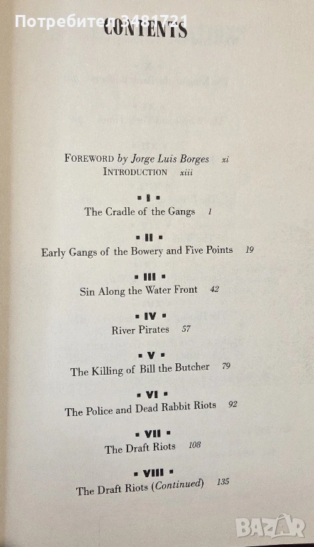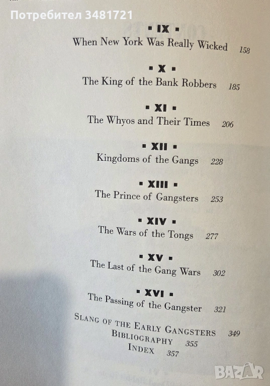 Първоначално издадена през 1927ма година, това е книгата, която век по-късно ще вдъхнови Майкъл Скорсезе да направи едноименния филм. Тя е история за криминално насилие, корумпирана политика и полиция, както и за незаконния секс. Град Ню Йорк, от края на колониалния период до началото на ХХ век, е бил оживен център на търговия, индустрия и имиграция. За мнозина градът е бил врата към нов живот в Америка, а за много други е бил място, където да откраднат пари от своите съграждани нюйоркчани и посетители на града с кражби, измами и пороци – в квартали като Файв Пойнтс, Бауъри, Хелс Китчън и Уотър Фронт.
