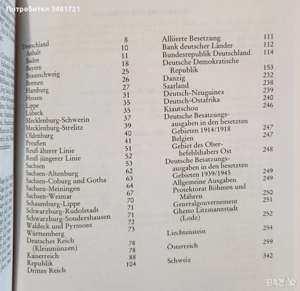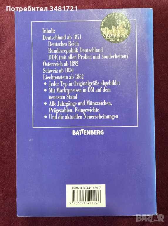 Книгата включва описание в текст, снимки и илюстрации на немски монети от 1871ва година до края на Студената война, австрийски монети от 1892ра година насам, швейцарски от 1850та година насам и монети от Лихтенщайн от 1862ра година насам.