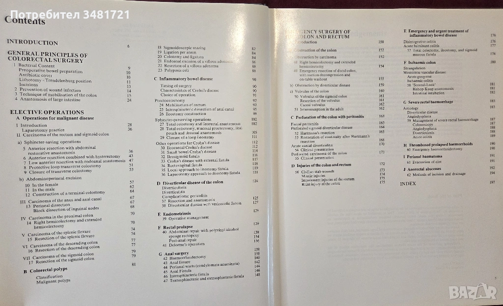 Цветен атлас, съдържащ описание и снимки на основните хирургични операции в областта на колопроктологията. Разгледани и илюстрирани са повечето от често извършваните операции, както планови, така и спешни.