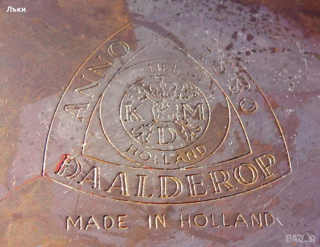 от високо качествена мед,маркирана с печат KDM Daalderop Made in Holland.Дръжката е от масивен бронз.От