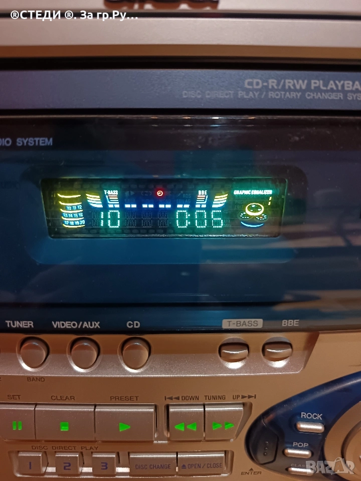 Работи на радио, AUX, на диско също, но може би трябва да се почисти окото, защото на някой дискове накъсва, иначе чете оригинални и презаписани дискове. Касетите са за ремаци! Няма дистанционно!!!, но се управлява от бутоните всички си работят.