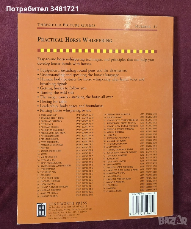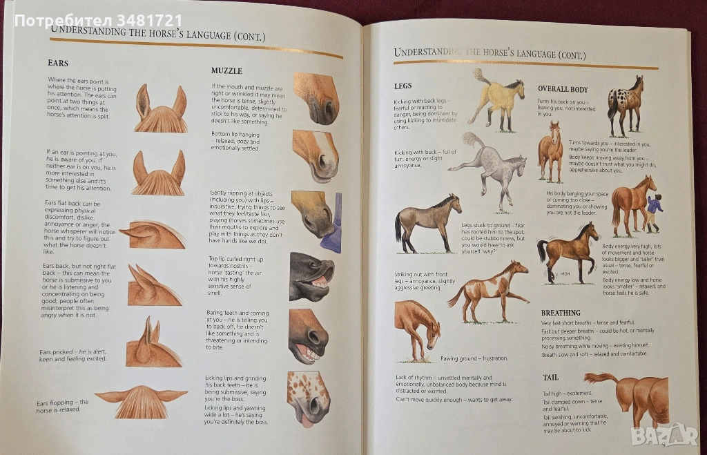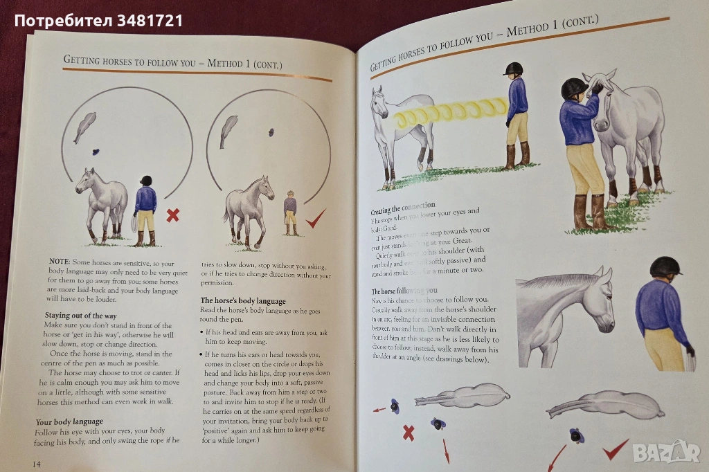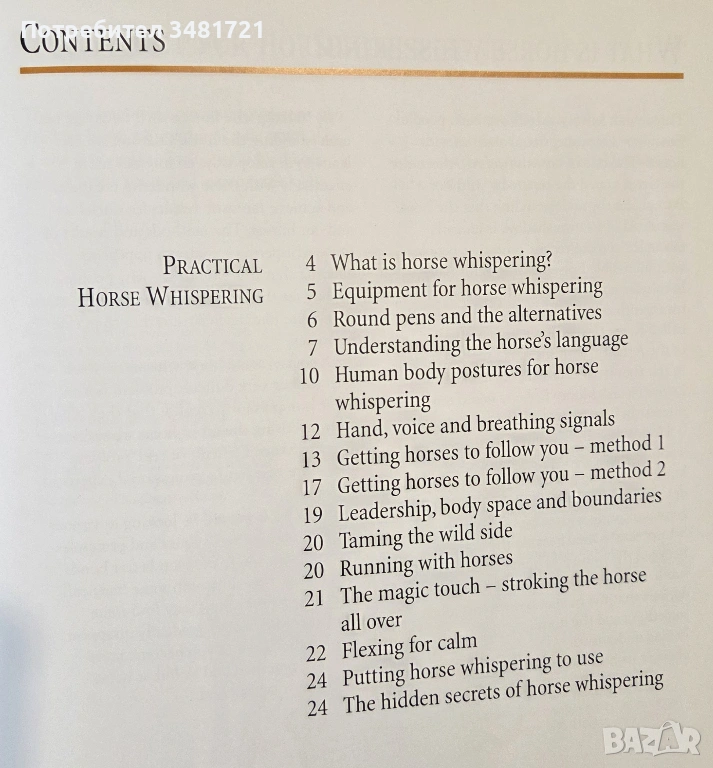 Книгата е практическо ръководство за развиване на добра връзка с животните. Тя разглежда основните команди, как те да бъдат развити и тренирани при конете, заедно с елементите от тяхното поведение, които дават насоки за текущото състояние на животното и подходяща, адекватна реакция при тях.