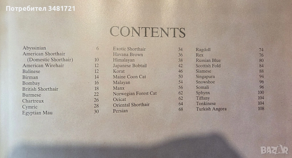 В текст и снимки, подредени по азбучен ред, книгата представя котки от цял свят - история на породата, темперамент и специфични характеристики, заедно с други любопитни факти.