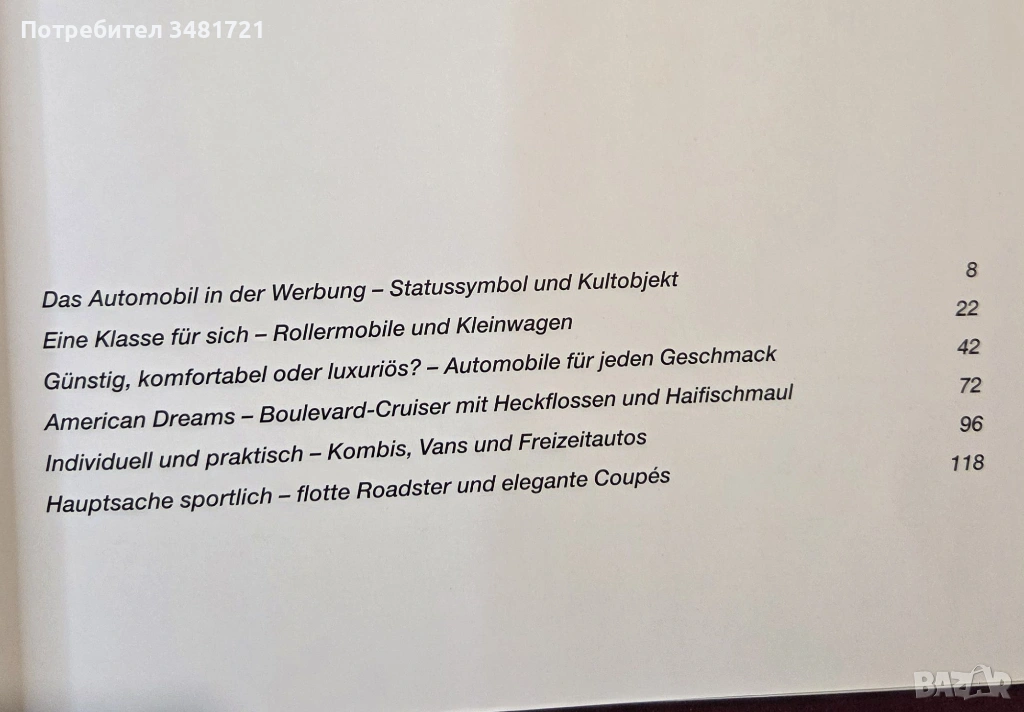 Независимо дали става въпрос за луксозен автомобил или за достъпен масово произвеждан модел, рекламните специалисти винаги са полагали много усилия, за да представят автомобилните продукти в най-добрата възможна светлина. Книгата събира в себе си автомобилната история на 50-те и 60-те години на миналия век, представяйки майсторски рекламни илюстрации от тези десетилетия. В ерата между икономическото чудо и Уудсток, множество класически автомобили слизат от поточните линии в Европа и САЩ, често представени с гениална креативност и съвършено артистично майсторство.