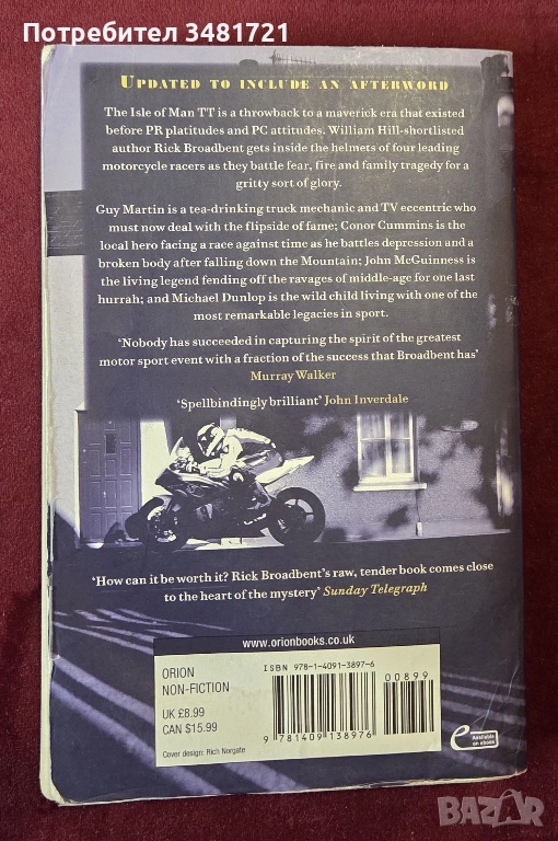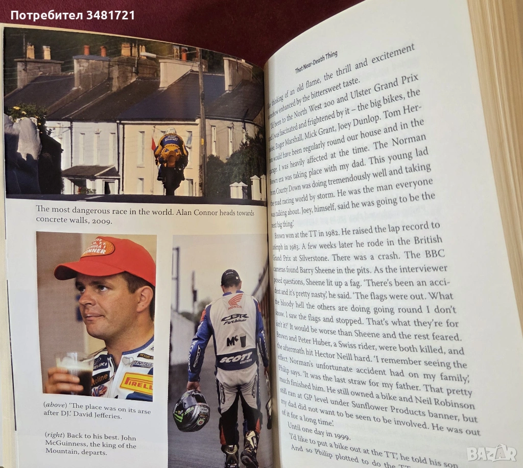 Мото състезанията на остров Ман са реликва на една отминала епоха. Всеобщо признати за най-опасните в света, те са останки от отминаваща авто култура, преди страхът, телевизионните ограничения и общественото желание за максимална безопасност да доминират в спортовете. Тази книга е поглед зад кулисите, надникване в каските на четирима водещи състезатели в течение на два сезона( 2010 и 2011), проследявайки мотористите през многобройните превратности на един средностатистически сезон. Какво виждат те, когато зад ъгъла идва стена, приближаваща се с невъобразима скорост? Да минеш през Mountain Mile, където през 2007ма година Брус Ансти мина с 207 мили(333км) в час, но мощният двигател на машината издържа едва 4 обиколки.