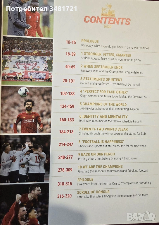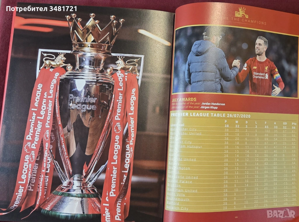 Един от най-харизматичните и вдъхновяващи мениджъри в съвременния футбол. Отбор, преливащ от нови играчи от световна класа на всяка позиция на терена. Митичен стадион и верни фенове, на които светът завижда. И летвата на футболния блясък, вдигната още по-високо, всичко това в един драматичен сезон във висшата лига, който ще остане като най-уникалния в историята на клуба след Втората световна война. Това е ФК Ливърпул през 2020. Най-успешният клуб в страната, завърнал се на върха на английския футбол с рекорден триумф. Това е официалната книга на сезона, която представя сензационната история на отбор, който просто продължаваше да печели, и печели, и печели. Суперкупа на УЕФА, Световно клубно първенство на ФИФА. И накрая - Висшата лига. Тази красиво илюстрирана история за един исторически сезон е пълна със снимки, ексклузивни интервюта и прозрения от Клоп и неговите звезди. Написано от редакционния екип, стоящ зад програмата за мачовете на LFC и месечното списание, издавано от официалните издателски партньори на клуба, Reach Sport, това е най-добрият сувенир за всеки фен на Ливърпул, разказващ забележителната история на невероятен сезон.