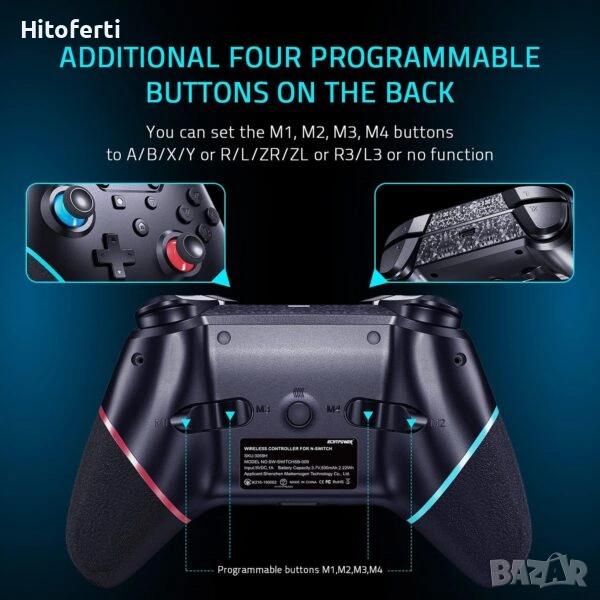4 допълнителни програмируеми бутона: ECHTPower превключвателят на контролера добавя 4 допълнителни бутона на гърба, можете да ги настроите A/B/X/Y или R/L/ZR/ZL или R3/L3. Професионалният контролен превключвател поддържа функция за събуждане с едно щракване, която може да ви помогне бързо да влезете в света на играта.