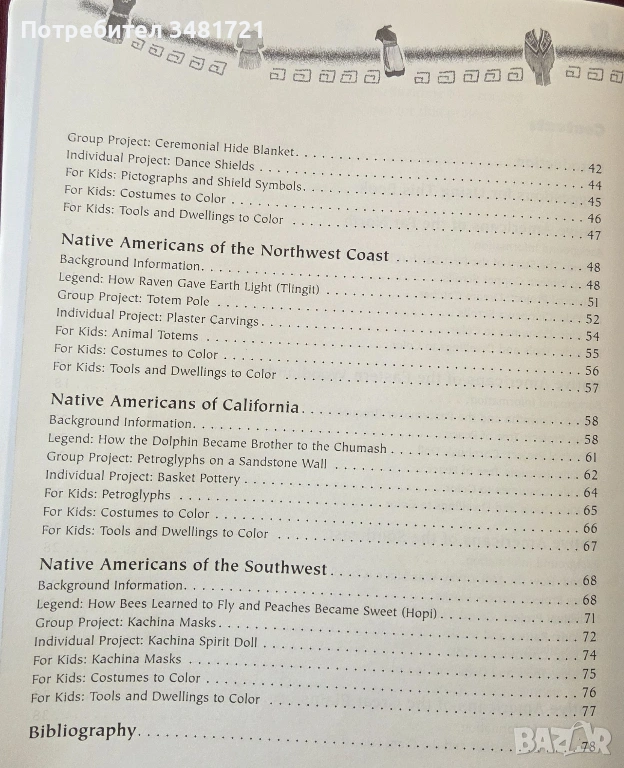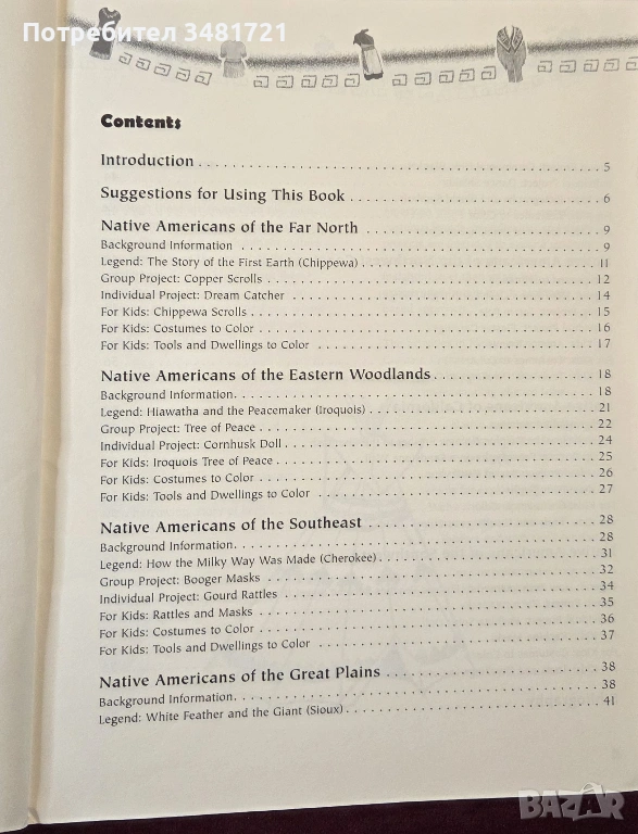 Книгата е съчетание между образователен източник с текст и много илюстрации, представящ историята на северноамериканските индианци, техните обичаи, вярвания и облекло, комбиниран с проекти за изработка на различни предмети, свързани с индианското културно и историческо наследство.
