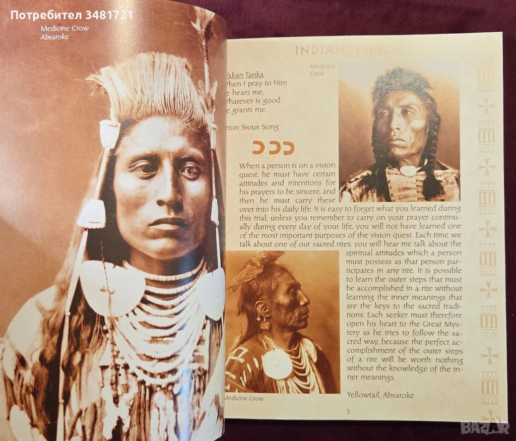 В текст и фогографии книгата разкрива лицата на индианците от предишни епохи, от времето преди резерватите, за да представи техния мироглед и начин на живот. Към всяка фотография е включен цитат, даващ идея за това как тези воини, вождове и духовни лица гледат на материалния и духовния свят, на човешките желания и емоции, на ежедневното и непреходното в живота.