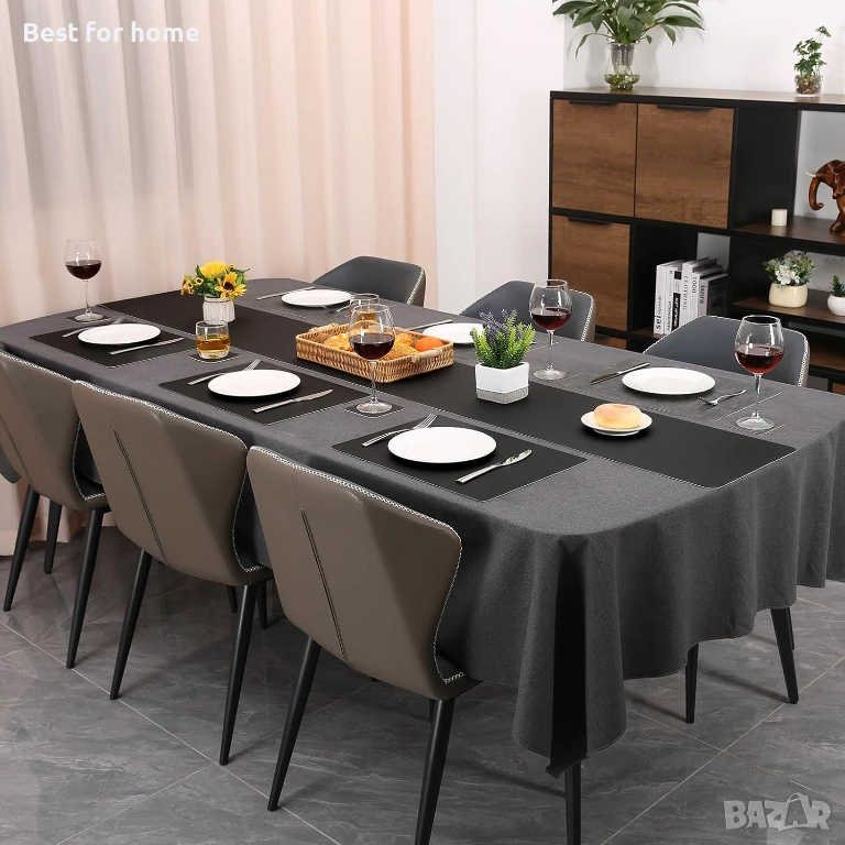 Висококачествен материал: Тази модерна пътека за маса е изработена от изкуствена кожа с повърхностна текстура, наподобяваща лен. За разлика от пътеките за маса от лен или тензух, тази пътека за маса от изкуствена кожа е водоустойчива и издръжлива, предпазвайки плота на масата ви от горещи тигани, драскотини и разливи.