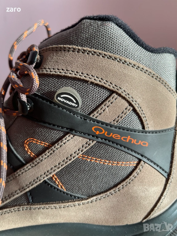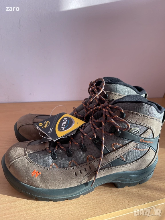 Чисто нови мъжки трекинг обувки 48 номер, стелка 31 см., технология Novadry, метални държачи за връзките, дълбок грайфер. Купих ги от Decathlon и реших, че са моя номер, но като ги премерих вкъщи ми се струва, че палецът ми леко опира, поради което ги продавам под цената.