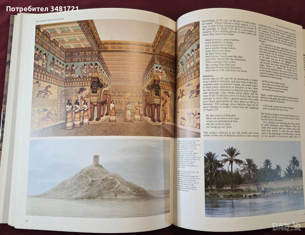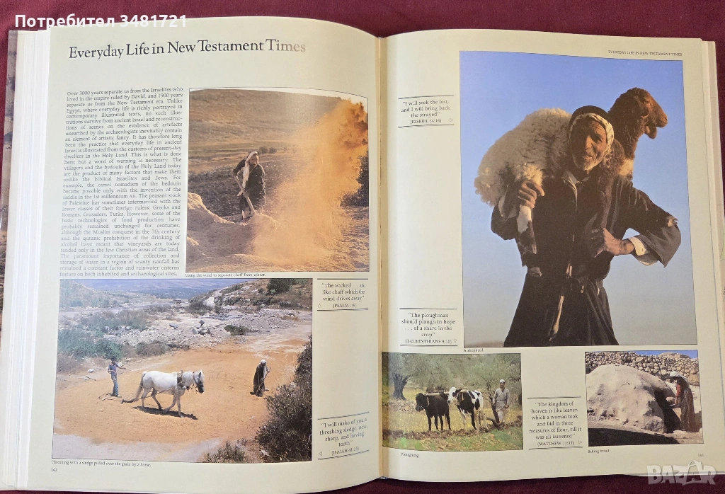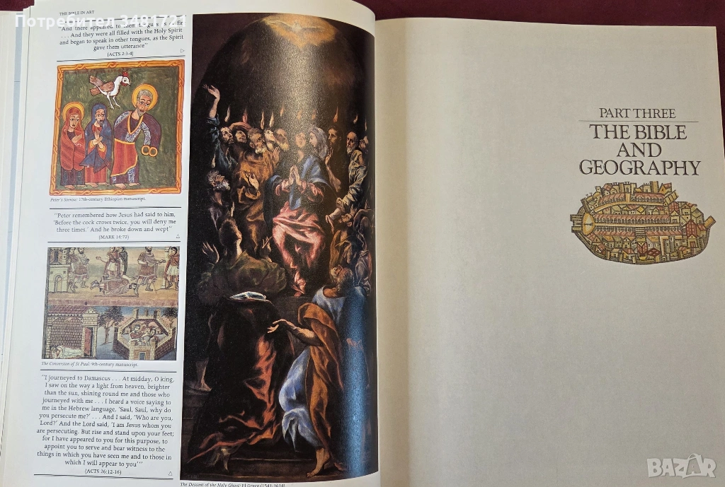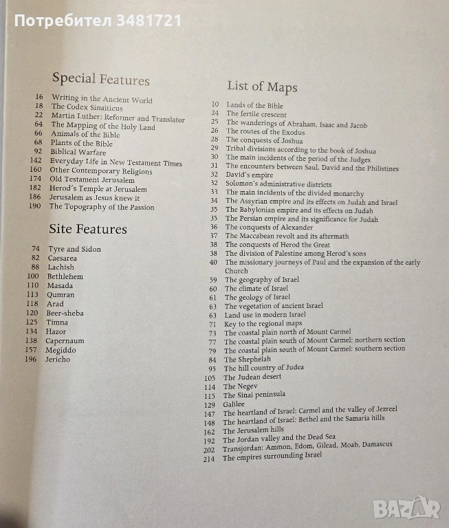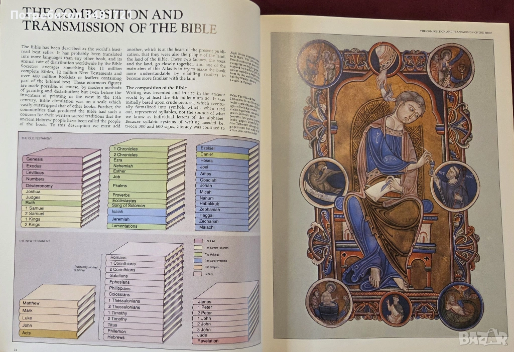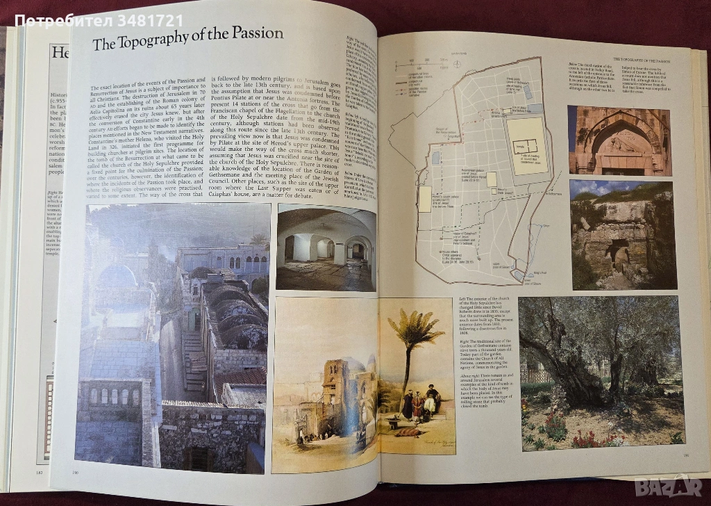 Визуално атрактивна, книгата представя в текст, карти и над 350 илюстрации основните места от библията. Книгата съчетава добре географска с историческа информация, като тя представя не просто географските локации, народите и събитията, описани в библията, а също така - религиозно изкуство, калиграфия, ежедневен живот в древността, животни и растения в библейските времена, военни сражения и много друга специфична информация.