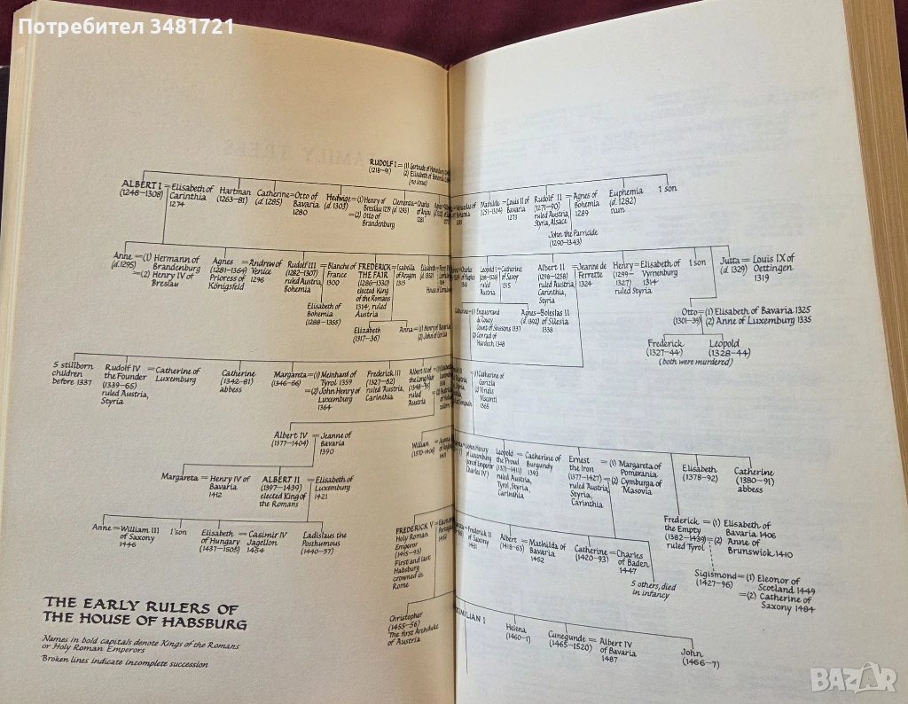 Описвани понякога като демони, отговорни за безчет зверства, а друг път - като вкаменелости, останки от отминала епоха, екстравагантната династия има дълга история. В много отношения, нейните членове не се различават от другите кралски династии от своя период. Но тяхната история, все пак, е интересна и завладяваща, включваща фигури като лудата кралица Хуана, която напредва през Испания с разлагащото се тяло на съпруга си, героично-плодовитата Мария Терезия и донкихотовския Максимилиан, „император“ на Мексико. Тази книга разказва за всички тях през вековете, но тя е нещо повече. Покриваща период от почти хиляда години (от Замъка на ястреба в зората на второто хилядолетие, през Cosa Nostra(Нашата кауза), до събития от 20ти век), книгата е определяна като задължително четиво за тези, които искат да разберат истинската история на Европа.
