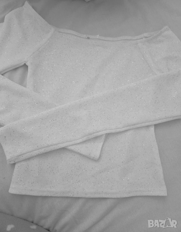 Дамска бяла блуза с брокат, снимка 1 - Блузи с дълъг ръкав и пуловери - 53749384 Дамска бяла блуза с брокат, снимка 2 - Блузи с дълъг ръкав и пуловери - 53749384 1/2