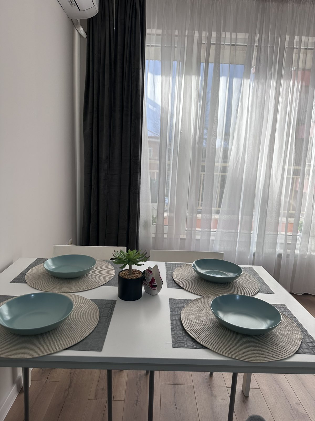 Разпределение ;Входно антре ,хол с кухненски бокс и трапезария ,спалня, мокро помещение баня с тоалетна и тераса.