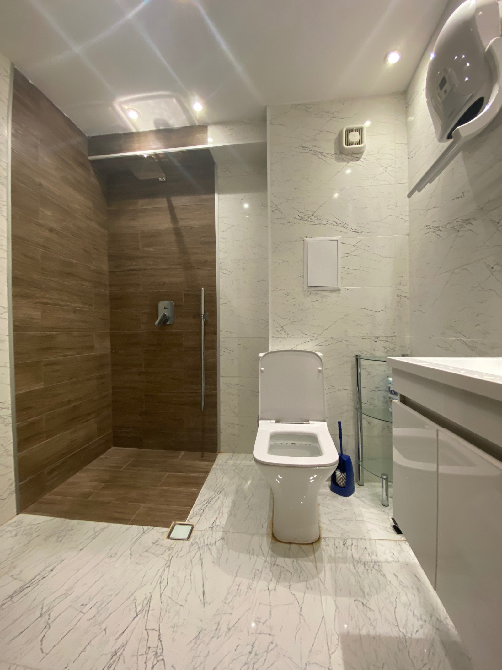Разпределение ;Входно антре ,хол с кухненски бокс и трапезария ,спалня, баня с тоалетна и тераса.