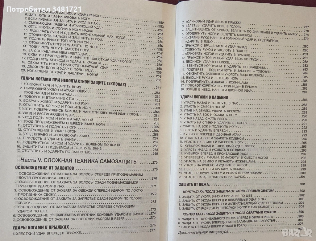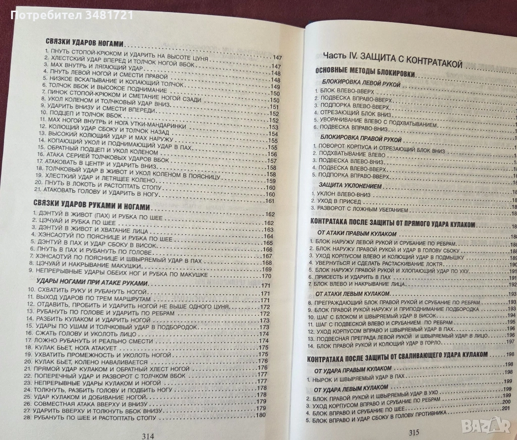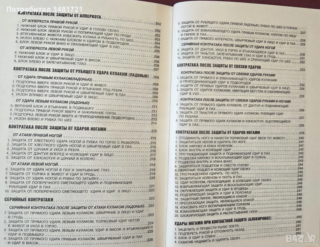 Книгата представя бойното изкуство, неговата история и различни школи, заедно с 232 техники в текст и илюстрации. Фокусът е поставен на поредиците от атакуващи движения с ръце и крака, но внимание е отделено и на защитни техники, както и контраатакуващи движения.