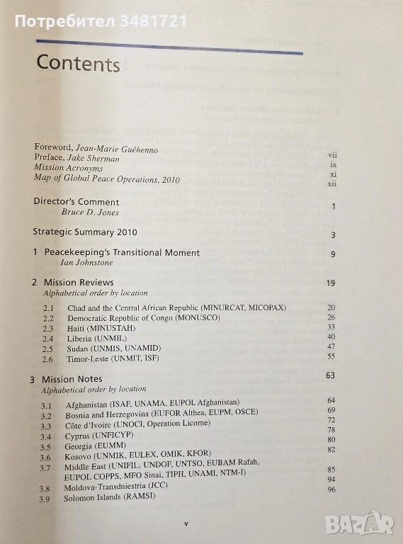 Уникален по обхвата си, годишният преглед представя подробна селекция от данни за мироопазващи операции на ООН, регионални организации, коалиции и отделни държави. В текст, снимки, илюстрации, диаграми, карти и статистически данни са представени: