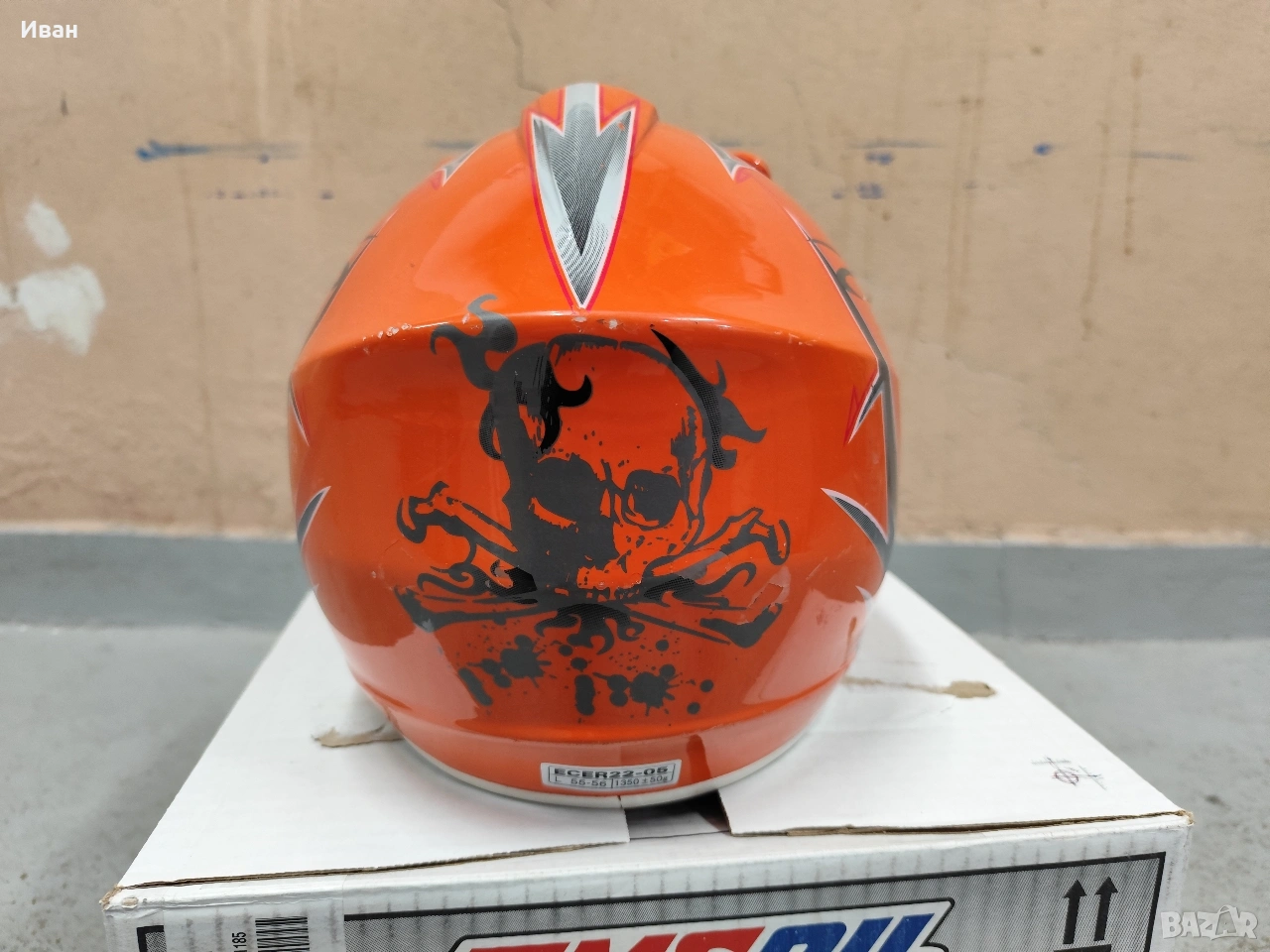 Продавам кросова мото каска, много удобна и здрава. Ползвана е 1-2 пъти от дете! Размера е L 55-56, категоризирана защита ECER 22-05. Каската е като нова