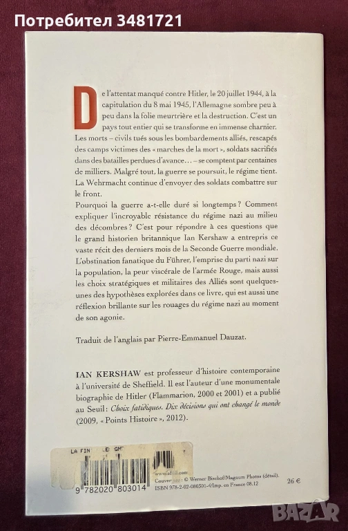 На тези въпроси търси отговор в своят книга авторът. Той прави подробен и фактологичен преглед на събитията от неуспешния бомбен атентат срещу Хитлер през юли 44та години до неговата смърт и капитулацията на Германия през 45та. „Краят“ рисува мъчителен, но завладяващ портрет на Третия райх в последните му дни, изпълнени с отчаяние.