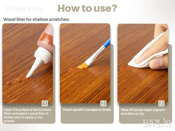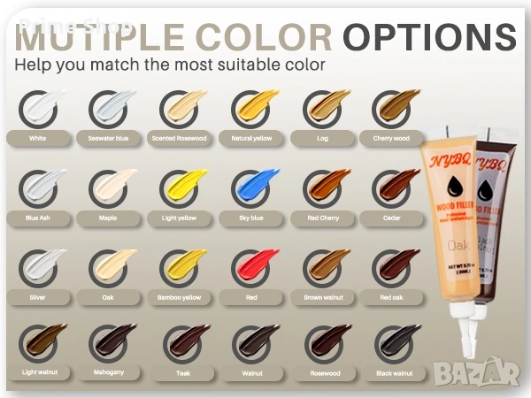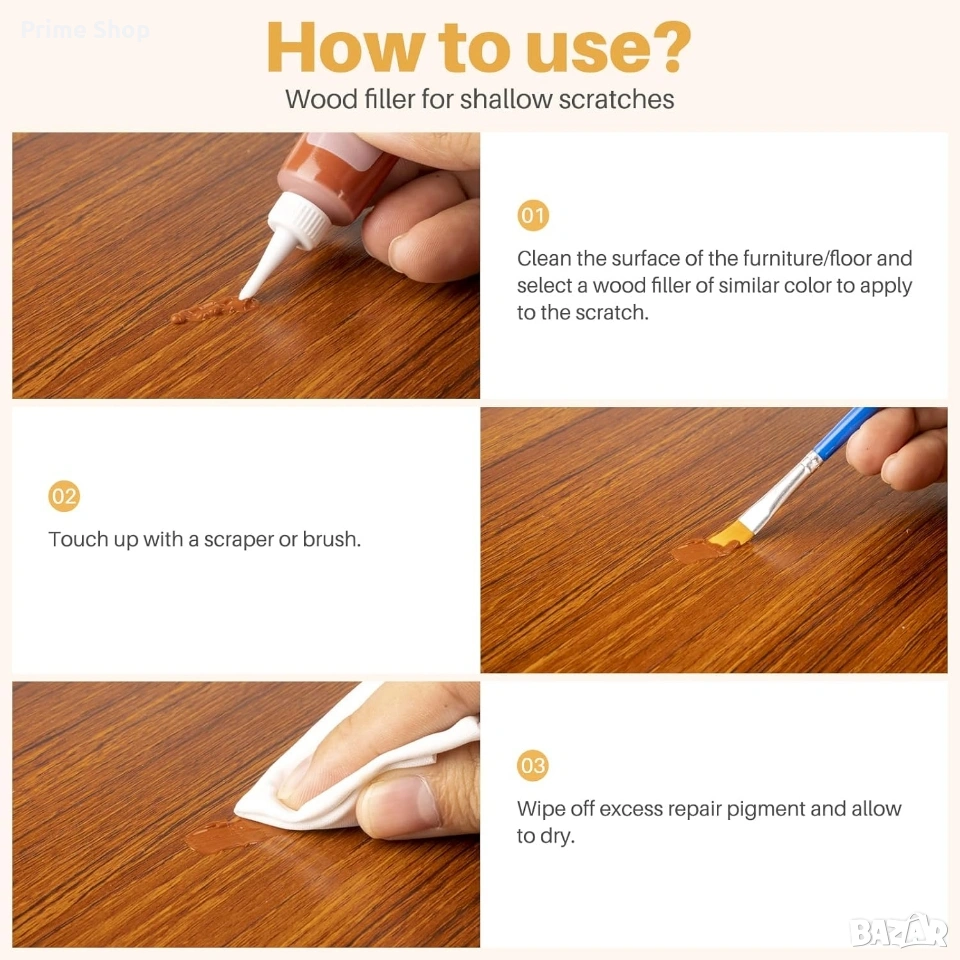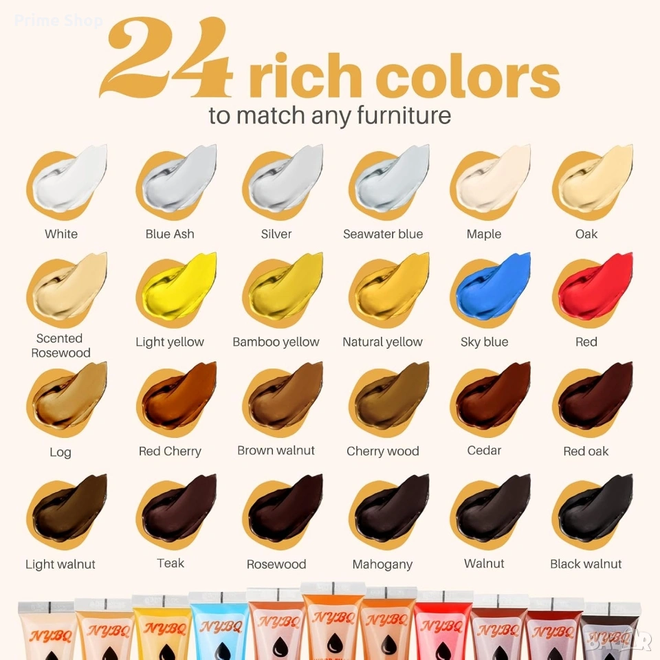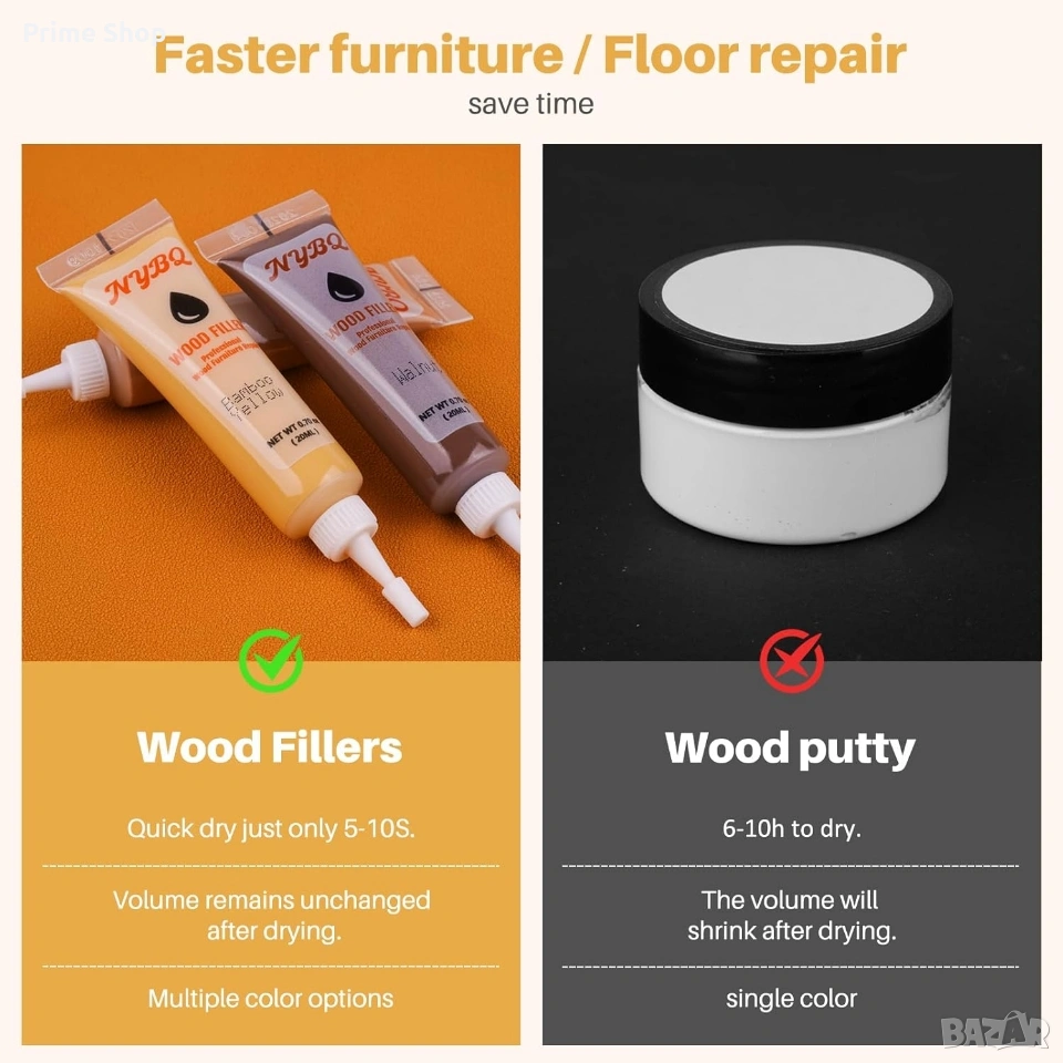 Тагове: ремонт на мебели, поправка на дърво, кит за ламинат, коректор за драскотини, пълнител за дърво, NYBQ, реставрация на паркет, ремонт на врати, дърводелски консумативи, коректор за фурнир