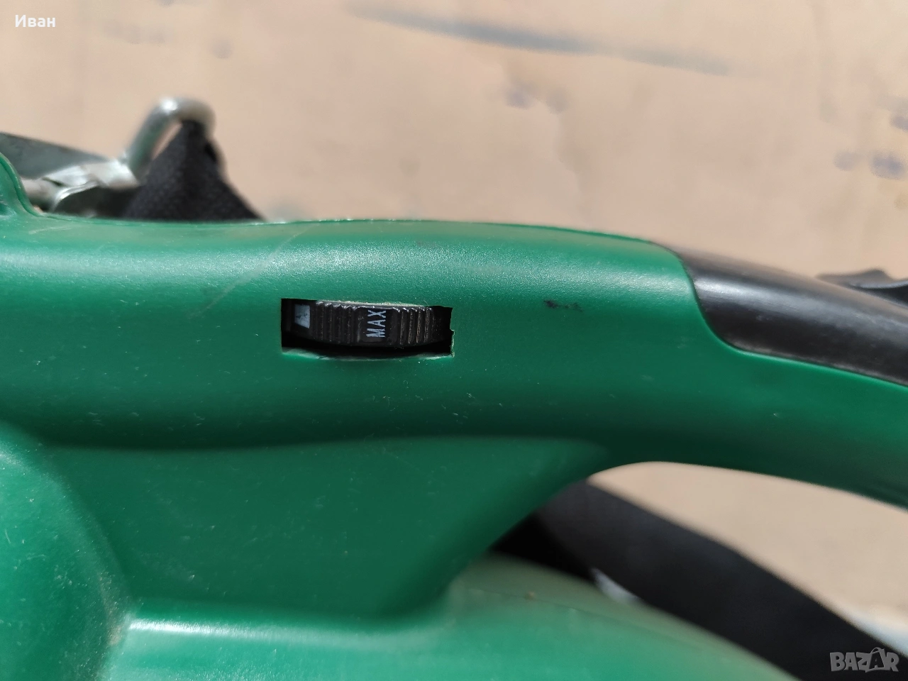 (6) Превключвател за засмукване/издухване Регулатор на скоростта.