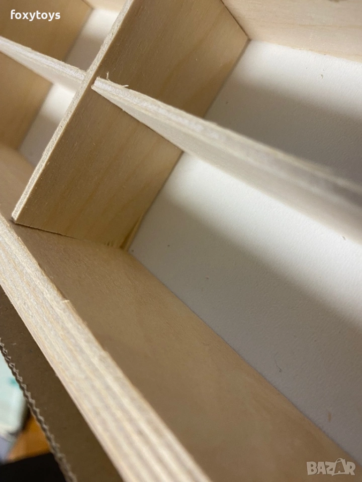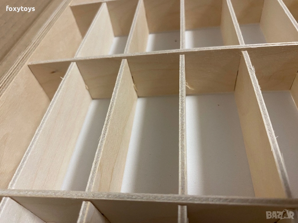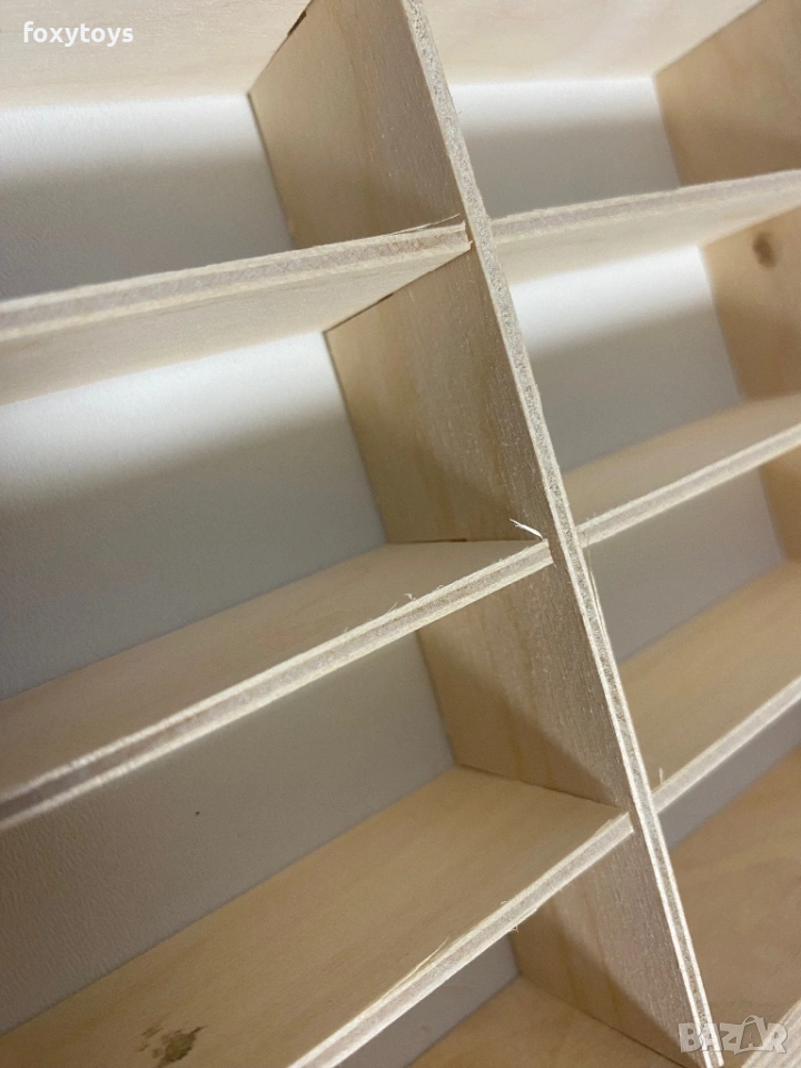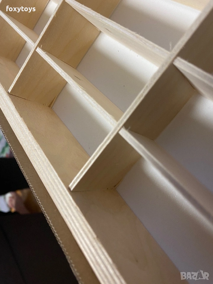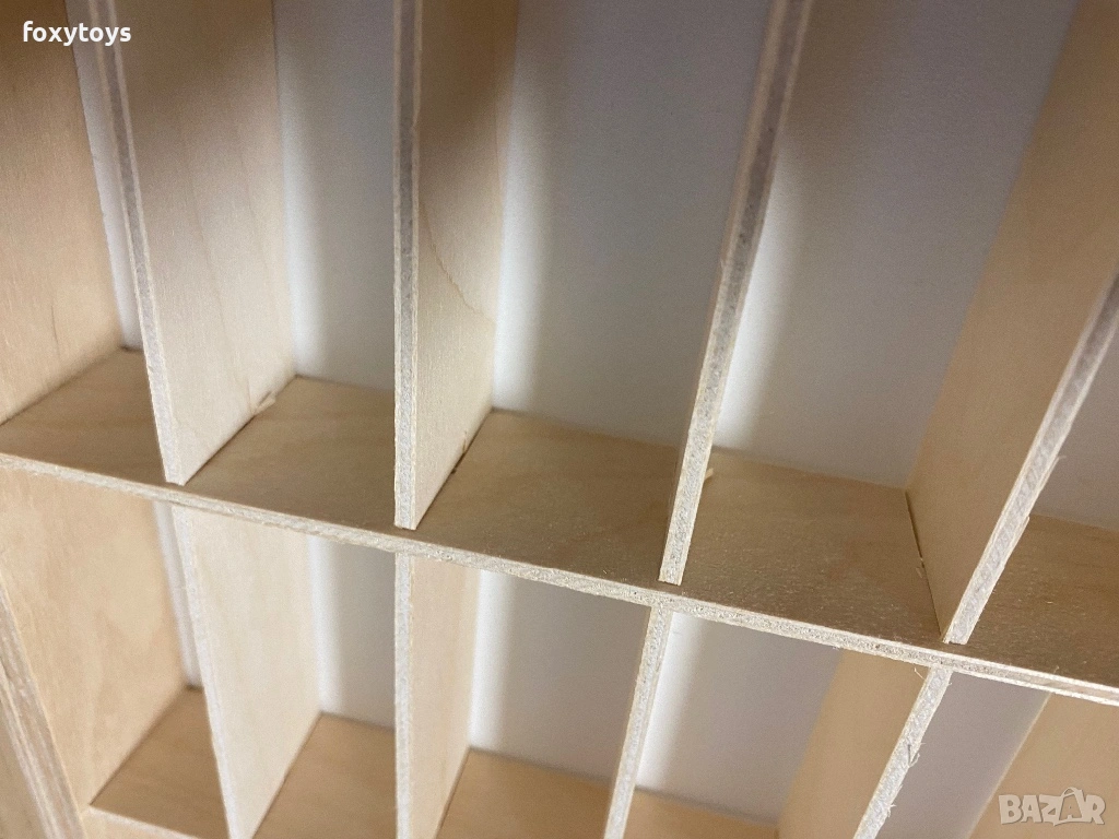 Дефектна дървена етажерка за колички, рафт, 80 отделения, хоризонтален