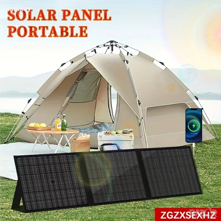 Продавам чисто нов, преносим сгъваем соларен панел с мощност 100W. Изработен от висококачествени монокристални клетки, които гарантират висока ефективност дори при по-слабо слънце. За разлика от масовите евтини панели, този модел е с EVA капсулиране за по-добра защита и дълъг живот.