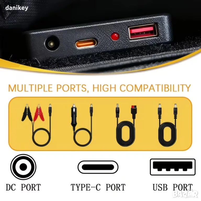 - Универсални изходи: Вграден контролер с USB-C (за бързо зареждане на смартфони), стандартен USB и DC 18V изход.