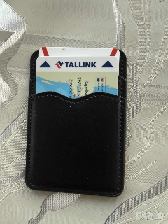 Събира с магнит л.карта ,ш.книжка и дебитна карта ,задната част е от ликра