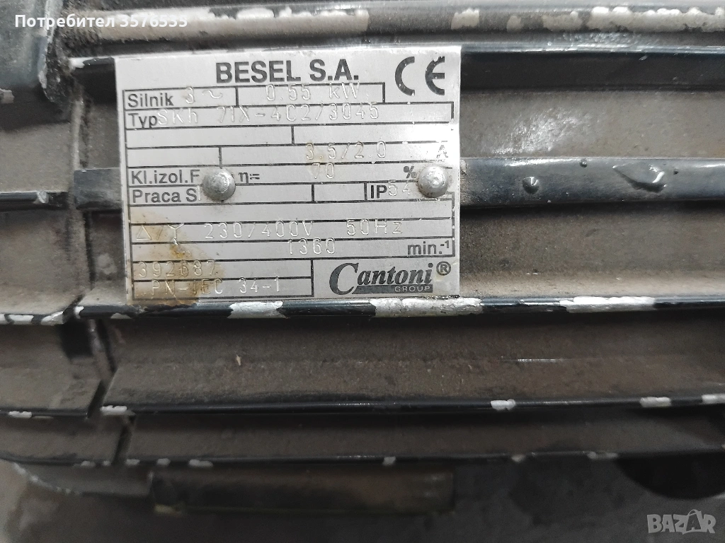 Електродвигател BESEL 0.55kW (550W), 1360 об/мин, Трифазен → Обява 53750884
