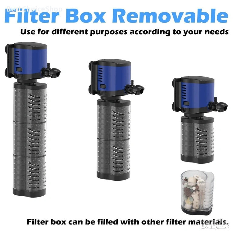 - 【Мощна помпа за създаване на вълни с дебит 2500 л/ч】Генерира енергичен воден поток, за да зареди водната среда, да създаде вълни и да поддържа жизнеността на рибите/костенурките в резервоари с дълбочина до 2,4 м