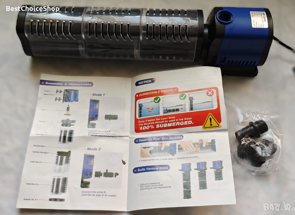 4-в-1 потопяема помпа 2500L/h тиха помпа за аквариуми