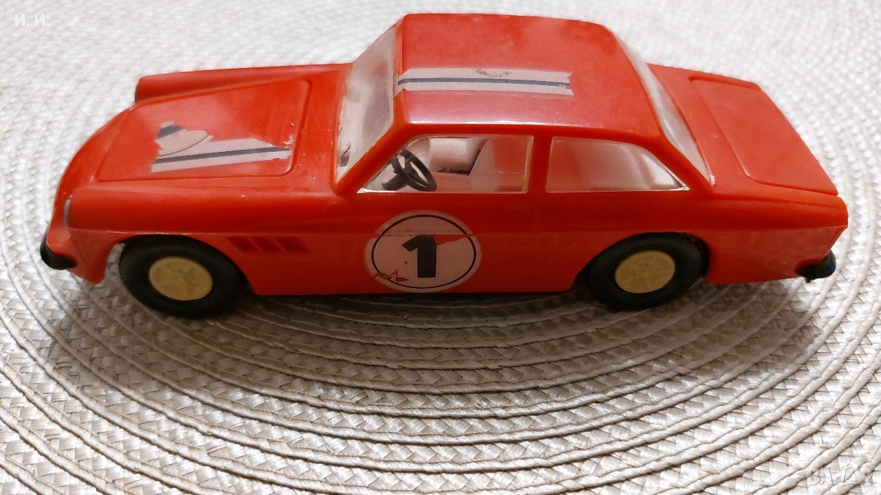 Тази играчка е ретро модел на Ferrari 330 GTC от 1966-1967 г., произведен в бившата Източна Германия (ГДР) от компанията VEB Plasticart. Моделът се характеризира със следните детайли: Мащаб: Обикновено е в мащаб 1:30. Материал: Изработен е изцяло от пластмаса. Функции: Разполага с фрикционен механизъм (за задвижване чрез засилване) и отварящ се преден капак, под който е изобразен белият пластмасов двигател. Произход: Произвеждан е в завода в Чопау (Zschopau). Vintage German VEB Plasticart - Ferrari 330 Gtc Plastic 1/30.
