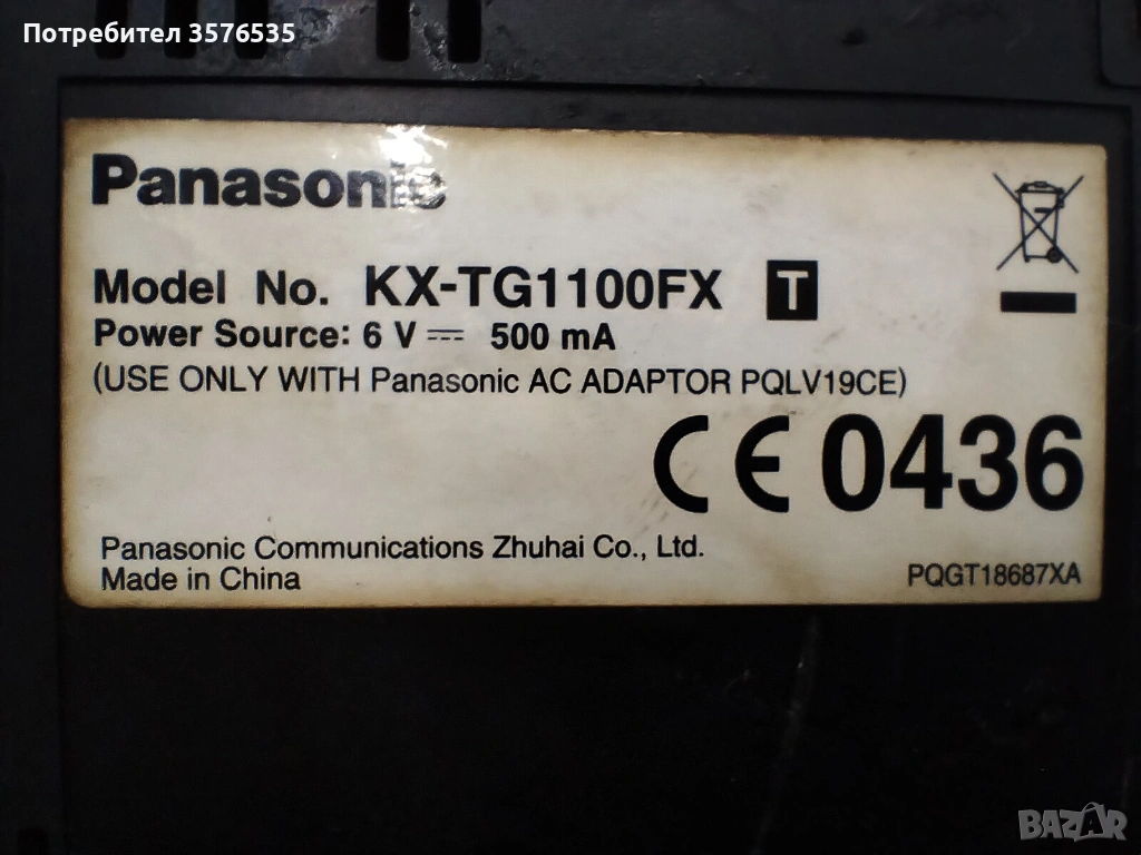 Пълен комплект: Слушалка, базова станция и оригинално захранване (адаптер Panasonic PQLV19CE).