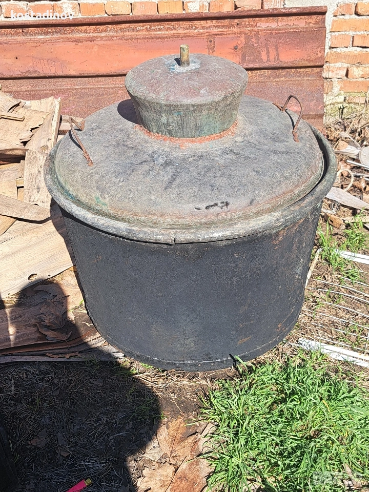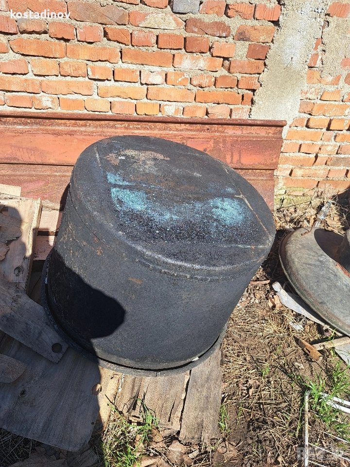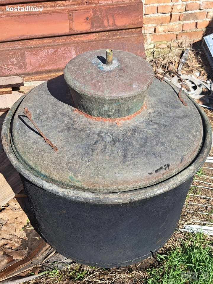 Казана е 240литра от наи стария матерял казана е кован не заварван които разбира много тежак има лула охладител може дасе види в пловдив и софия Казан цена незнам колко предлагате имаите предвит че на вторични дават 500евро имаси лула и серпетина може и бартер с друг казан и доплаштане от вас
