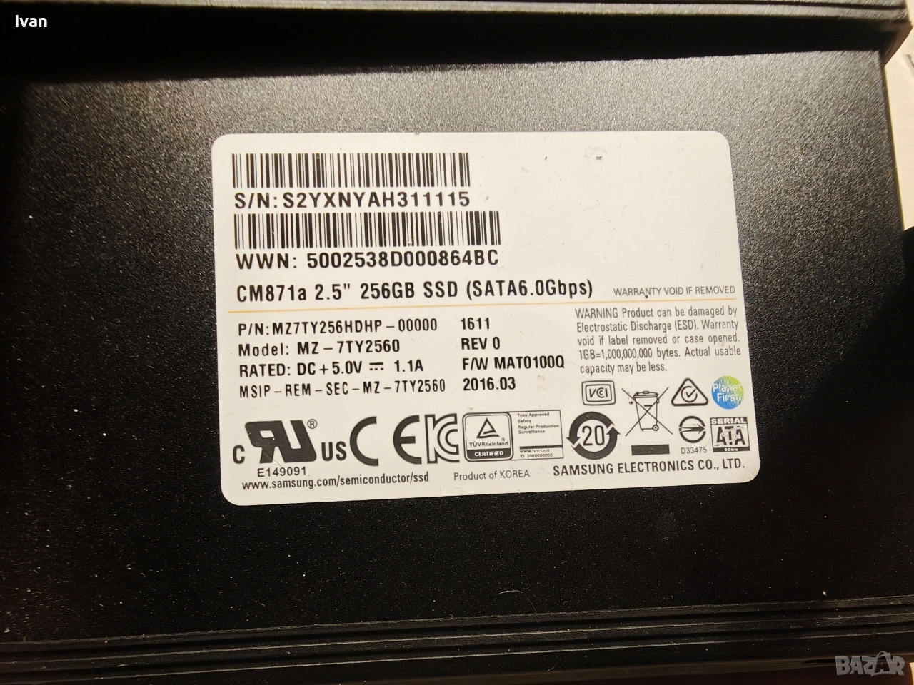 Samsung SSD 2,5" 256GB (SATA6.0Gbps), снимка 1 - Твърди дискове - 53751129 Samsung SSD 2,5" 256GB (SATA6.0Gbps), снимка 2 - Твърди дискове - 53751129 1/2