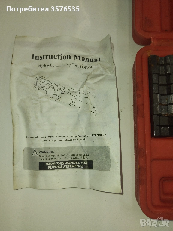 Продавам хидравлична преса за кабелни обувки YQK-50. Инструментът е