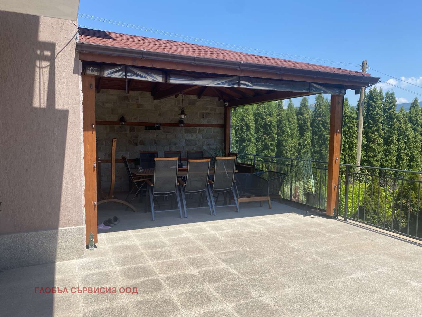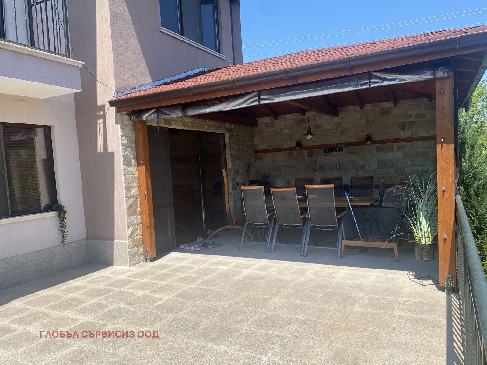 Lovely house built in 2009 in a quiet and peaceful place in the villa area of the village of Dragovishtitsa, 15 minutes from Sofia. Excellently maintained property, built with quality materials, furniture and taste. It consists of a ground level, an entrance hall, a living room with a dining room, which leads to a huge terrace - 40 sq.m, a bedroom, a bathroom with toilet, a laundry room, a storage room (with a boiler); second floor - bedroom with en-suite bathroom with toilet, two more bedrooms with balconies and bathroom with toilet. Basement light level - tavern and storage room. Fully landscaped yard, tall thuja. The plot is on two streets and the yard of 1000 sq.m can be divided into two and a second house can be built. An excellent solution for heating electricity, water jacket, sewerage and gas to the house. Beautiful views, silence and space. For more information and viewings Mariela Kitanova 0888660255, offer number 12570