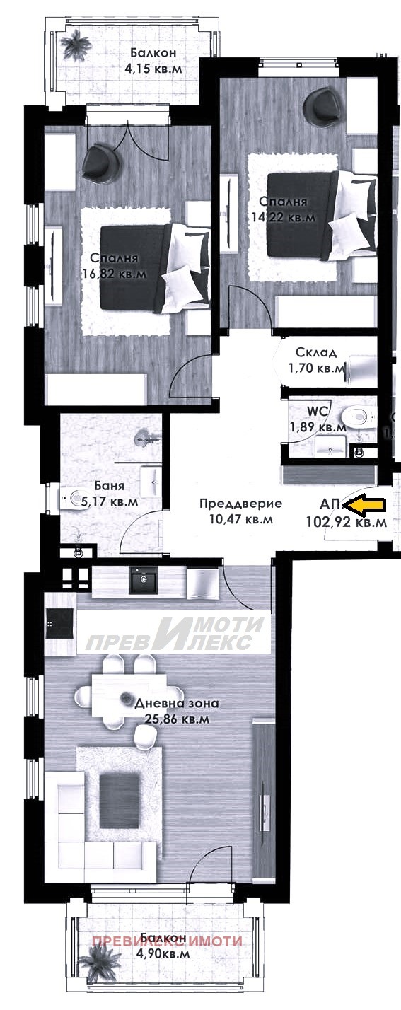 Оферта 1-5950, Без комисионно възнаграждение от купувача. Цени на инвеститор. Избор на етаж, изложение и големина на 2-стайни и 3-стайни апартаменти. Предлагаме Ви апартамент в ново-строяща се сграда. Бърз достъп до главни пътни артерии града. На близко разстояние от търговска зона в квартала, училище и детска градина. Разпределение на помещенията: дневна с кухненски бокс с излаз на тераса, две спални, втора тераса към едната, баня с тоалетна и отделна тоалетна, склад и входно антре. Възможност за закупуване на гараж или парко-място. Доказал се във времето инвеститор с много завършени сгради. Степен на завършване: стени и таван - шпакловка, под - циментова замазка, ВиК до тапа, ел. инсталация до фасунга и ключ, PVC дограма, завършени тераси с гранитогрес и парапет. Луксозно завършени общи части - вътрешни и външни парапети, блиндирана входна, контролиран достъп и електрически безшумен асансьор. Препоръчваме това жилище при избора Ви на нов дом или като подходящ инвестиционен инструмент. Гарантираме, че ще получите необходимото внимание и компетентно съдействие. Ние ще Ви предложим професионално отношение и чрез индивидуален подход ще се стремим да бъдем максимално полезни в търсене на най-доброто решение за Вас. Работим с голям кръг от инвеститори, строители и колеги и се стремим да покрием с максимално изчерпателна информация и оферти зададените от Вас критерии. Съдействаме за получаване на ипотечен кредит за имота, който сте избрали, при най-добри условия за купувача. За повече подробности, проект или оглед сме на разположение на посочения телефон.
