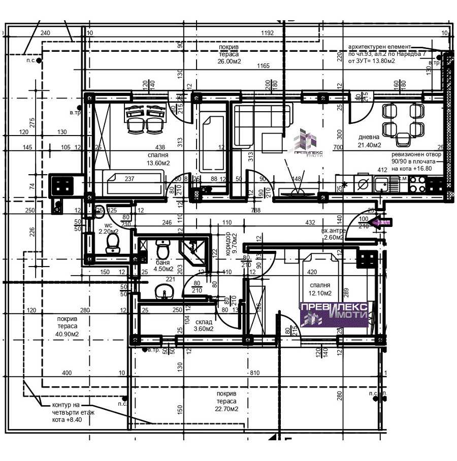оферта 1-6434. Без комисионно възнаграждение от купувача. Цени на инвеститор. Нисък процент общи части. Ограничен избор на етаж, изложение и големина на 2-стайни, 3-стайни и многостайни апартаменти. Предлагаме Ви просторен мансарден апартамент в ново-строяща се сграда, част от композиция от две малки кооперации. Бърз достъп до главни пътни артерии. На близко разстояние от търговска зона в квартала, училище и детска градина. Разпределение на помещенията: дневна с кухненски бокс с излаз на просторна терса, която се простира около целия апартамент, две спални, едната с гардеробна, баня с тоалетна, отделна тоалетна, килер и входно антре. Възможност за закупуване на гараж или парко-място. Схеми на разсрочено плащане, съобразени с възможностите на купувача. Доказал се във времето инвеститор с много завършени сгради. Степен на завършване: стени и таван - шпакловка, под - циментова замазка, ВиК до тапа, ел. инсталация до фасунга и ключ, PVC дограма, завършени тераси с гранитогрес и парапет. Луксозно завършени общи части - вътрешни и външни парапети, блиндирана входна, контролиран достъп и електрически безшумен асансьор. Препоръчваме това жилище при избора Ви на нов дом или като подходящ инвестиционен инструмент. Гарантираме, че ще получите необходимото внимание и компетентно съдействие. Ние ще Ви предложим професионално отношение и чрез индивидуален подход ще се стремим да бъдем максимално полезни в търсене на най-доброто решение за Вас. Работим с голям кръг от инвеститори, строители и колеги и се стремим да покрием с максимално изчерпателна информация и оферти зададените от Вас критерии. Съдействаме за получаване на ипотечен кредит за имота, който сте избрали, при най-добри условия за купувача. За повече подробности, проект или оглед сме на разположение на посочения телефон.