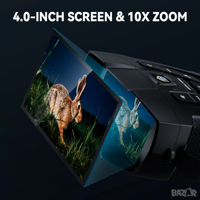 Големият 4" IPS цветен дисплей осигурява ясно изображение и удобство при наблюдение, без необходимост от директно гледане през оптични окуляри, което прави устройството подходящо и за продължително използване.