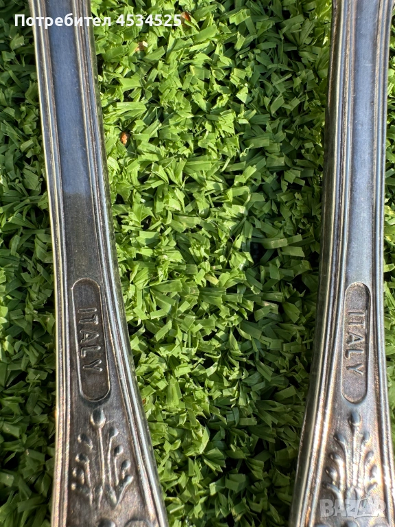 Маркировка ITALY на гърба. Посребрени / метална сплав с покритие, типично италианско производство от 60–70-те години на ХХ век. Изработени чрез щанцоване.
