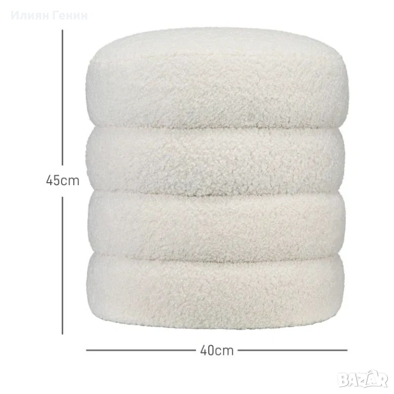 ✔ Дебелата подплата от пяна и мекият калъф от плюшено вълнено платно на табуретката осигуряват комфорт